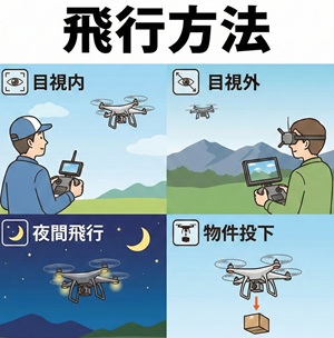 - その次に、「申請が必要な飛ばし方(特定飛行)かどうか」を判断します。