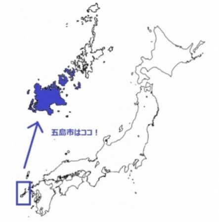 五島市位置図 五島列島南西部に位置する、美しい砂浜などの自然景観と文化的歴史的資産が豊かな観光地で、2018年には市内にある潜伏キリシタン関連遺産が世界遺産に登録されました。