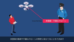 受信機は主に、航空局員や重要施設の管理者、警察関係者などへ販売。(一般販売はしない)重要施設などに侵入した不審なドローンを発見するときに役立てることができる。