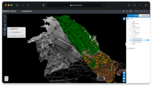 スキャン・エックス株式会社は、レーザーやLiDARなど各種機器で取得した3D点群データをオンラインで高精度なクラス分類・解析が出来るソフト「スキャン・エックスクラウド」を提供している。